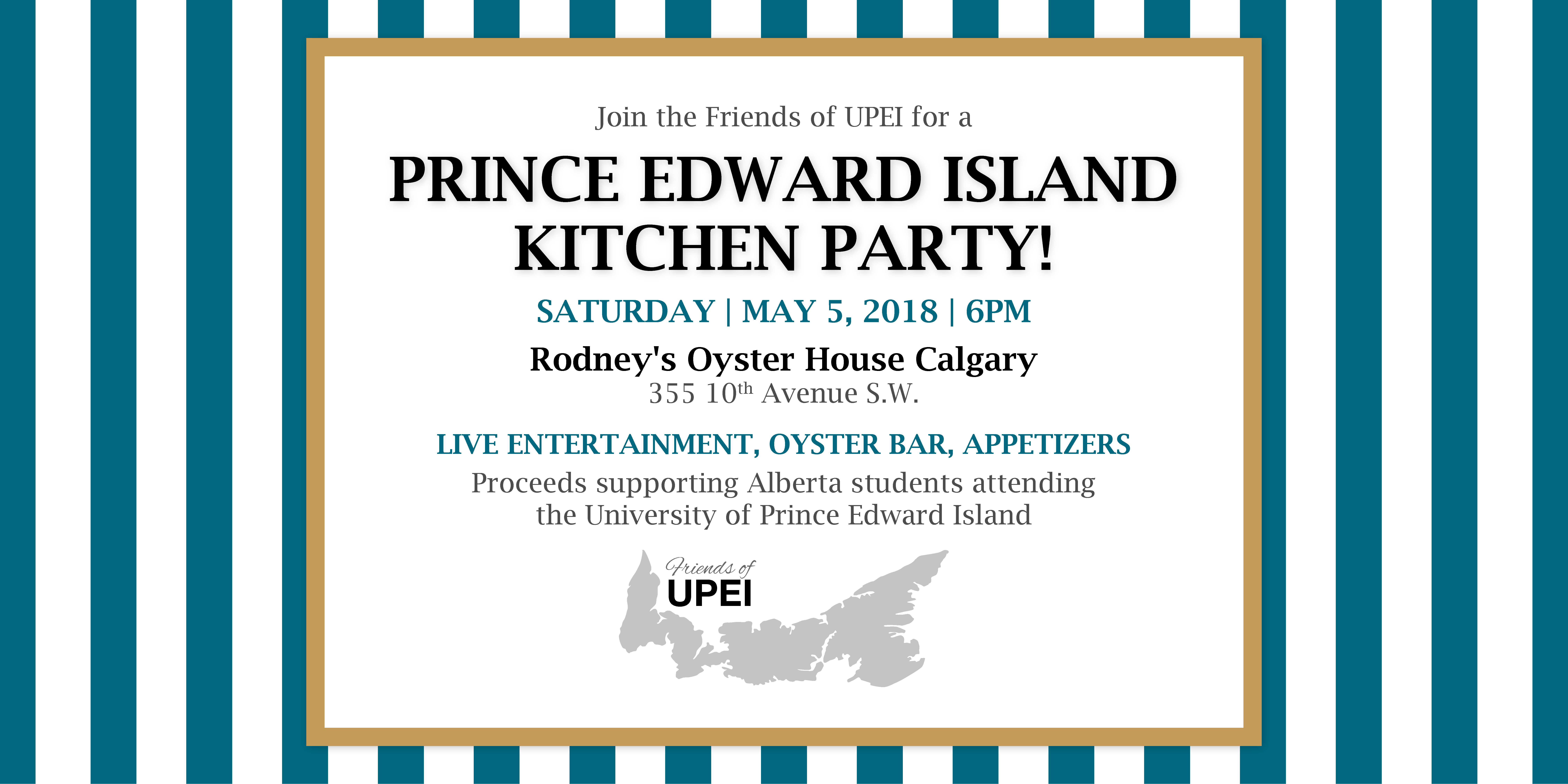 The Friends of UPEI and Rodney’s are teaming up for a Prince Edward Island Kitchen Party supporting Alberta students attending the University of Prince Edward Island. Live Entertainment, Oyster Bar, Appetizers and a whole lot of Maritime Hospitality!