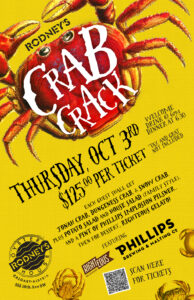 Join Rodney’s Oyster House and Phillips Brewing & Malting Co. while we get hands on and crack some crab. You will be welcomed with a pint of cold Implosion Pilsner from Phillips Brewing & Malting Co. before settling down to smash your way through three types of crab. Our West Coast Dungeness will be boiled in a Philips Implosion Pilsner bath, Jonah Crab will take on a Cajun spice, while the Snow Crab legs will be simply served chilled. Our salads will give you a protein break, and everything will be topped off with some gelato from our friends over at Righteous Gelato for dessert. Casual clothing recommended… $125 plus tax and gratuity per person. Please email bookings@rodneyscalgary.com if separate ticket purchases wish to be sat at the same table.